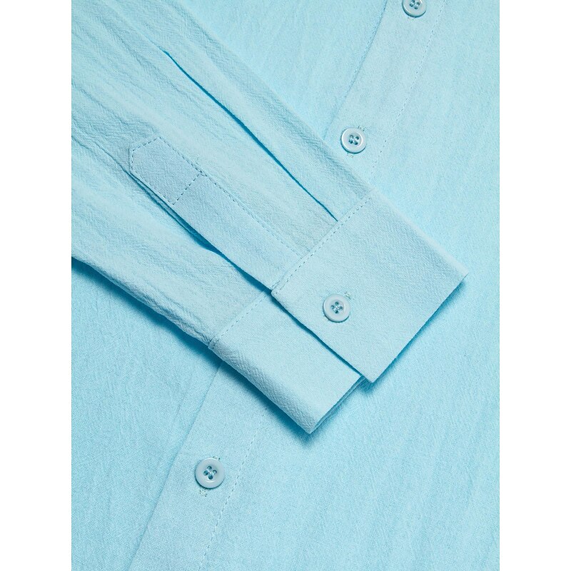 This shirt embodies a timeless appeal with its traditional lapel collar and full button-down front. Designed in a plain, light blue color, it exudes simplicity and elegance. The versatility extends with its suitability for casual and formal settings, making it an easy-to-pair wardrobe staple.