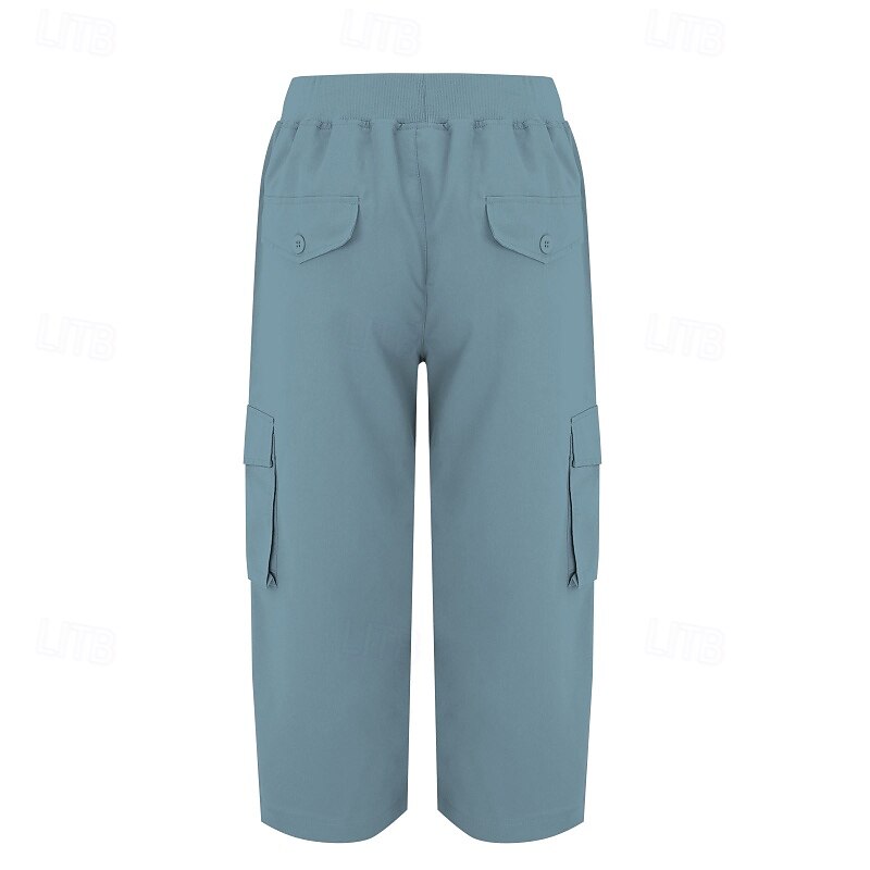 Women's Capri Pants Slacks Parachute Pants Casual Daily Casual Calf-Length Natural Plain Pocket Elastic Drawstring Design Breathability Soft Micro-elastic Street Daily Peacock Blue Light Sky Blue 6