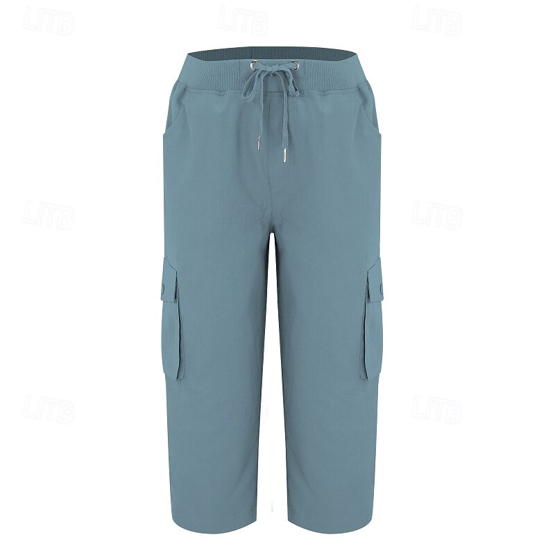 Women's Capri Pants Slacks Parachute Pants Casual Daily Casual Calf-Length Natural Plain Pocket Elastic Drawstring Design Breathability Soft Micro-elastic Street Daily Peacock Blue Light Sky Blue 8
