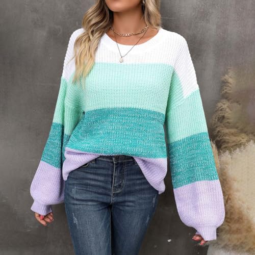 HOT ! Womens Striped Color Block Sweater Long Sleeve Crewneck Casual Loose Fit Soft Knit Sweater Soft Jumpers Pullover Tops