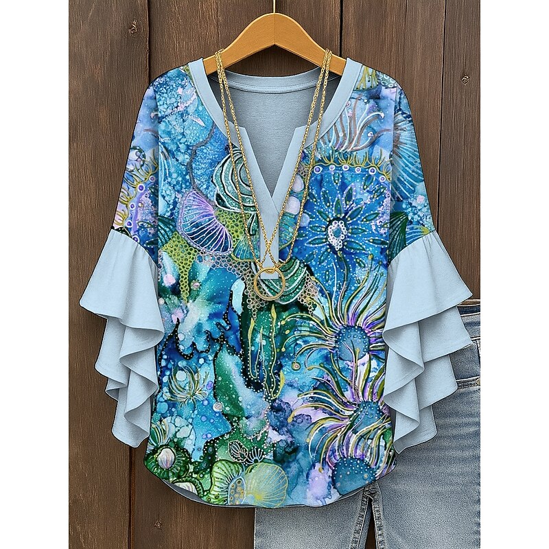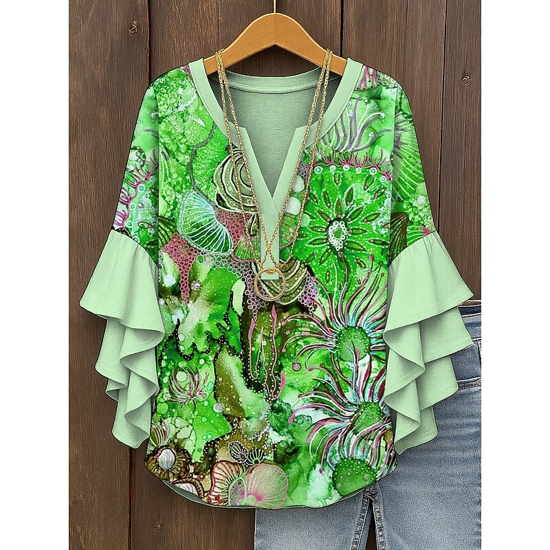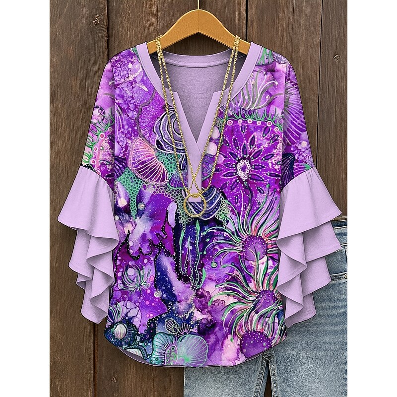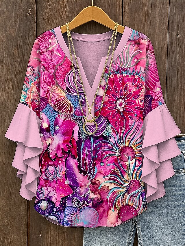 More information about Women's Blouse V Neck Ombre Graphic Abstract Bohemia Vintage Daily 3/4 Length Sleeve Regular Tops Daily Holiday Vacation Wear Print Pink Blue Purple Orange Green Summer Spring Fall