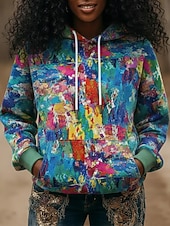 More information about Women's Pullover Hoodies Graphic Color Block Abstract Fashion Streetwear Casual Long Sleeve Hooded Regular Tops Dailywear Casual Sports Drawstring Pocket Print Blue Spring Fall