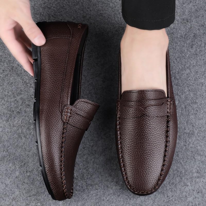 Men's Loafers Round Toe Leather Penny Loafers Resistant Comfortable Lightweight Casual Slip On 7