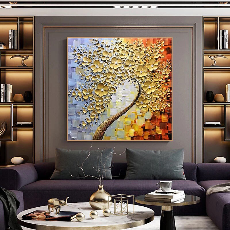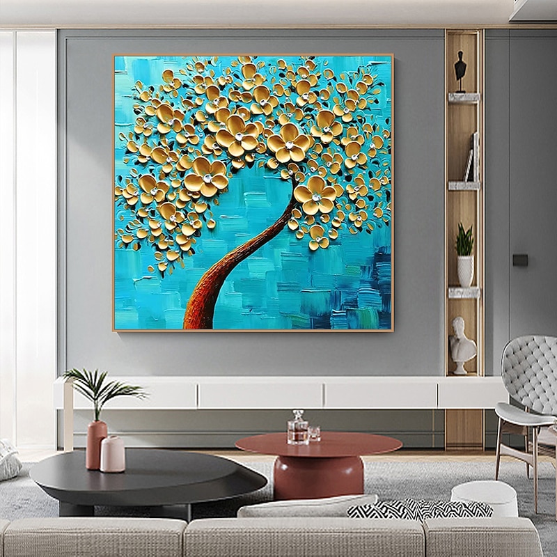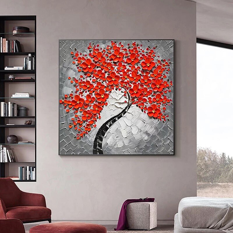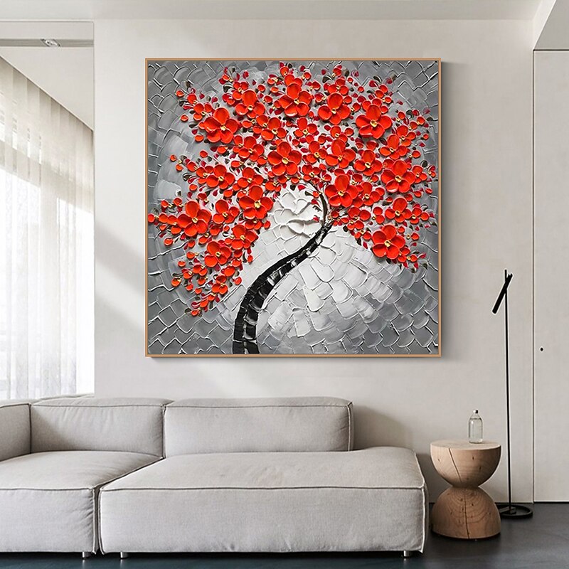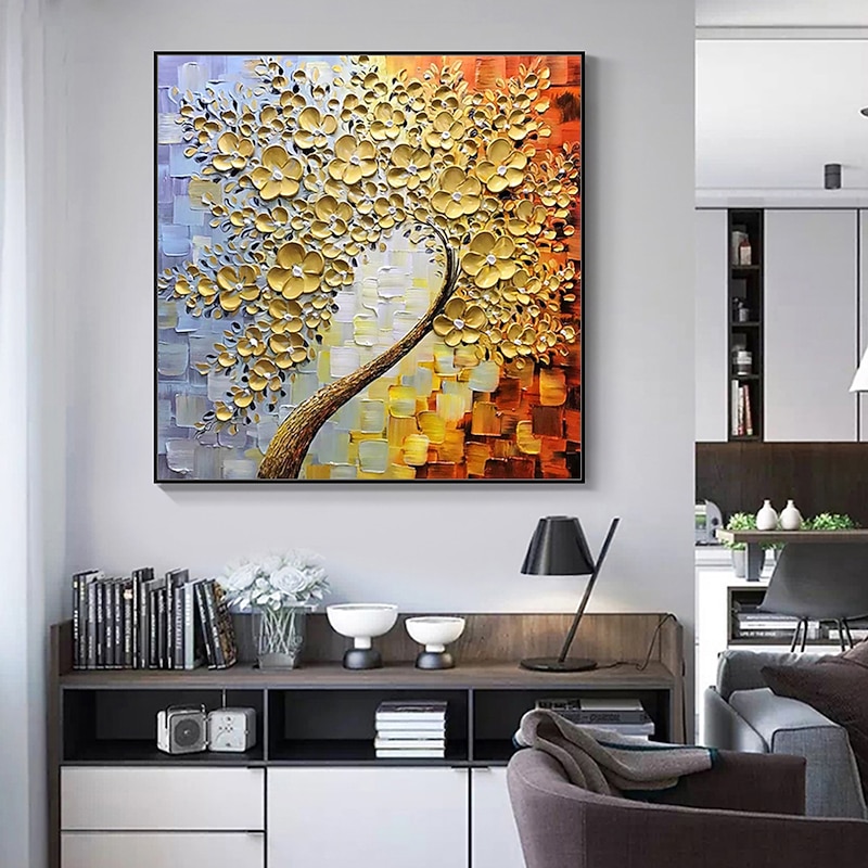 Mintura Handmade Thick texture Flowers Oil Paintings On Canvas Wall Art Decoration Modern Abstract Tree Picture For Home Decor Rolled Frameless Unstretched Painting 1