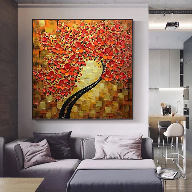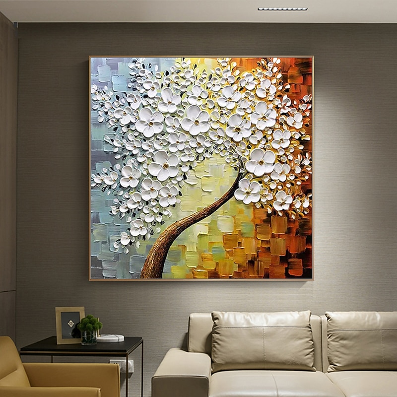 More information about Mintura Handmade Thick texture Flowers Oil Paintings On Canvas Wall Art Decoration Modern Abstract Tree Picture For Home Decor Rolled Frameless Unstretched Painting