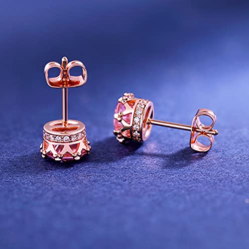 MDFUN Rose Gold Plated Stud Earrings for Women 6.0mm Round Brilliant Crown Birthstone Birthday Jewelry Gift 3