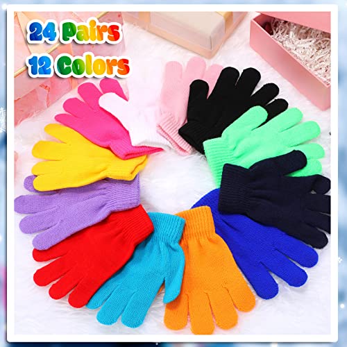 Handepo 24 Pairs Knit Kids Gloves Bulk Winter Warm Gloves for Boy Girl Toddler 6