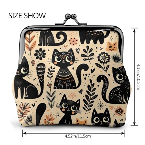 Pu Leather Buckle Coin Purse Cute-Cats-Floral Girls Kiss-Lock Change Purse Wallets 4