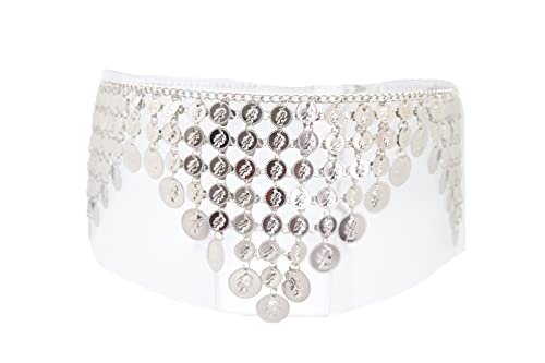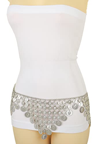 • Women’s Silver Metal Coin Belly Dance Belt – Sexy Boho Tribal Waist Chain – Adjustable One Size S/M – Ethnic Gypsy Festival Fashion