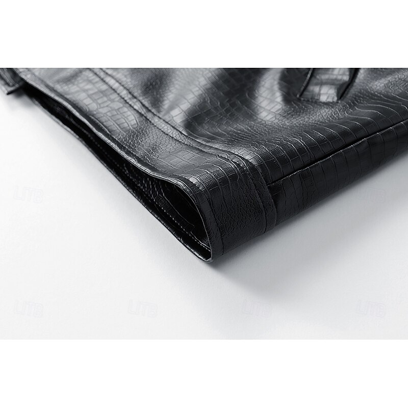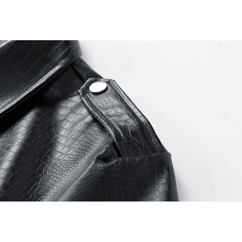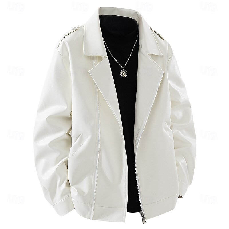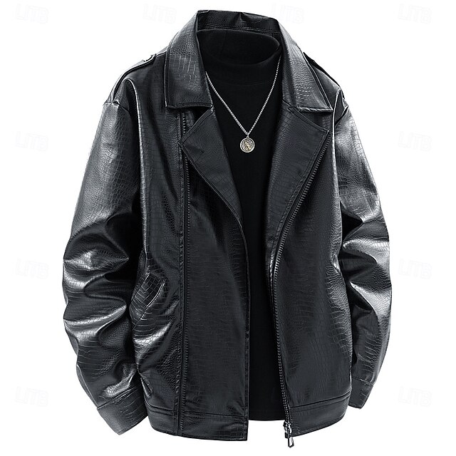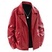 More information about Men's Faux Leather Jacket Motorcycle Jacket Outdoor Casual Windbreaker Vintage Style Front Zip Fall Winter Solid Color Punk Active Short Black White Red Jacket