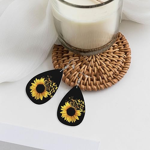 Yellow Sunflower Flower Earrings For Women Jewelry Lightweight Faux Leather Teardrop Drop Dangle Earrings 6