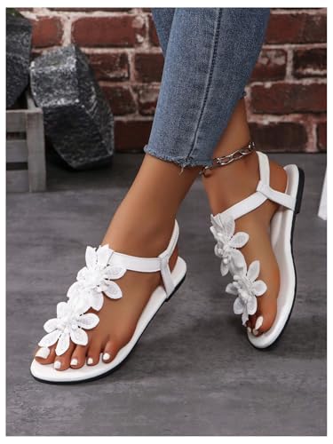 GORGLITTER Women's Flower Thong Flat Sandals Floral Open Toe Ankle Strap Vacation Beach Flats Shoes 4