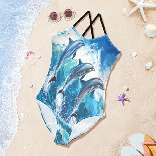Girl's One Piece Swimsuit Beautiful Dolphins Jumped Beach Bathing Swimwear 4