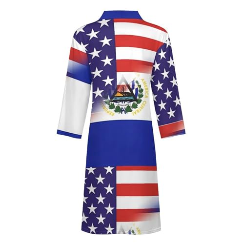 US Sal-vador Combined Flag Funny Men's Robe Soft Lightweight Bathrobe Long-sleeve Spa Robes 4
