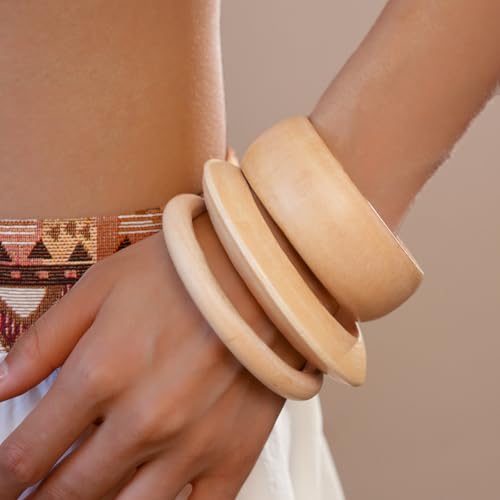 • Style Options:Collection features wide cuff bracelets in rich rivet, natural wood with striking grain patterns, and solid wood bangles