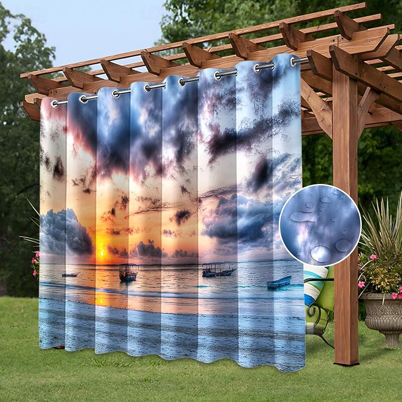 HOT ! Waterproof Outdoor Curtain Privacy, Sliding Patio Curtain Drapes, Pergola Curtains Grommet 3D Watrefall Boat For Gazebo, Balcony, Porch, Party, 1 Panel