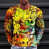 More information about Men's Abstract T Shirt Graphic Tee Long Sleeve T shirt 3D Print Crew Neck Shirt Designer Casual Outdoor Vacation Daily Yellow Red Blue Spring & Fall Clothing Apparel S M L XL 2XL 3XL 4XL