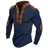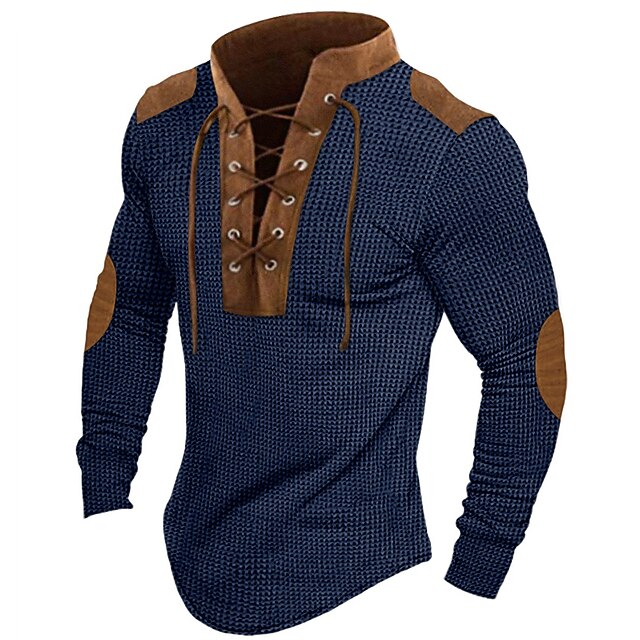 More information about Men's T Shirt Waffle Knit Tee Tee Top Long Sleeve Shirt Long Sleeve Hooded Spring & Fall Color Block Fashion Designer Basic Lace up Patchwork Vacation Street Going out Black Navy Blue khaki Top Tee