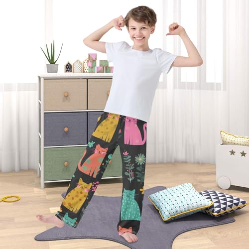 Lovely Cat Spring Flowers Boys Long Pants Soft Trousers Elastic Waist Kids Lounge Bottoms with Pockets S-XL 6