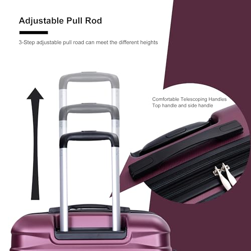 Expandable 5-Piece Luggage Set for Stress-Free Travel, Lightweight and Durable, with 360° Wheels, Wine Red 3