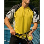 More information about Men's Patchwork Sport Shirt Golf Polo Shirt Tennis Shirt Tennis Tee Short Sleeves Front Zip Sweat-Wicking Moisture Wicking Breathable Tennis Golf Pickleball Yellow Blue Dark Gray Tennis Clothing