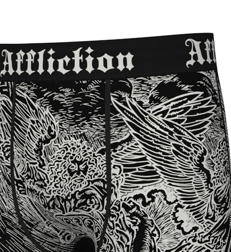 HOT ! Affliction Men's Boxer Briefs, Black with Gothic Wing Art Print Design, Performance Athletic Underwear