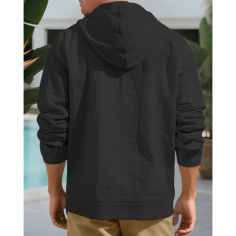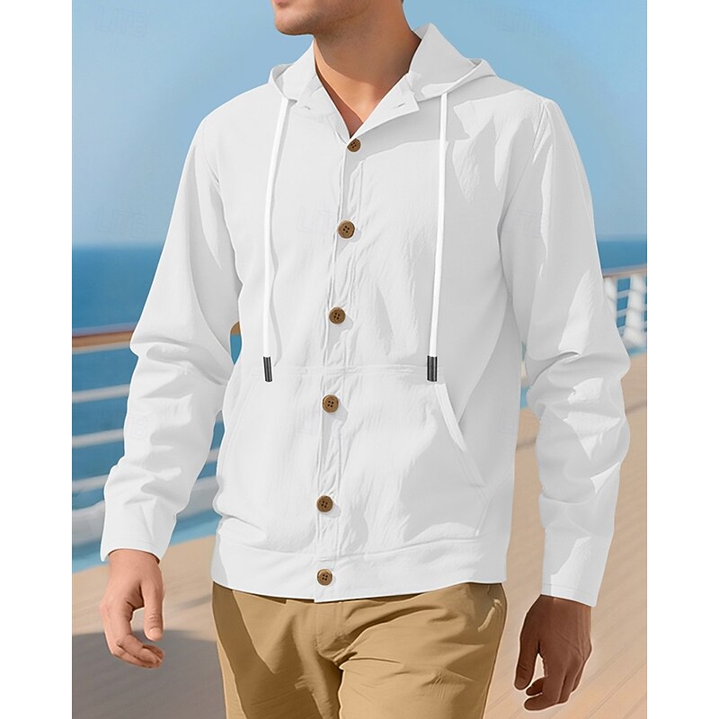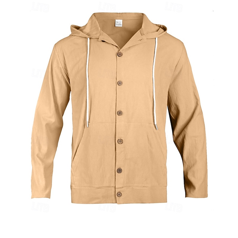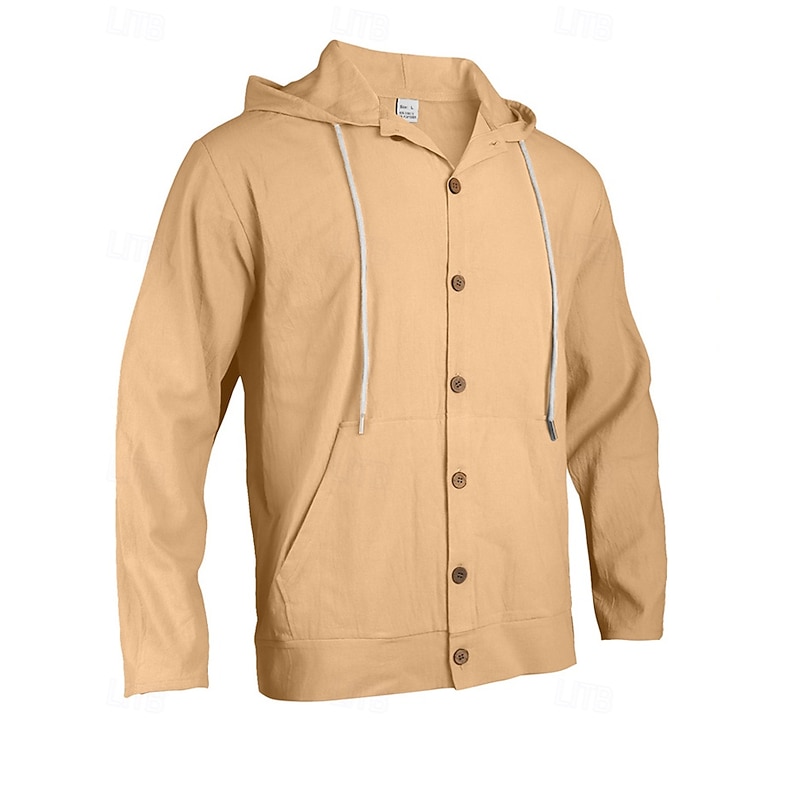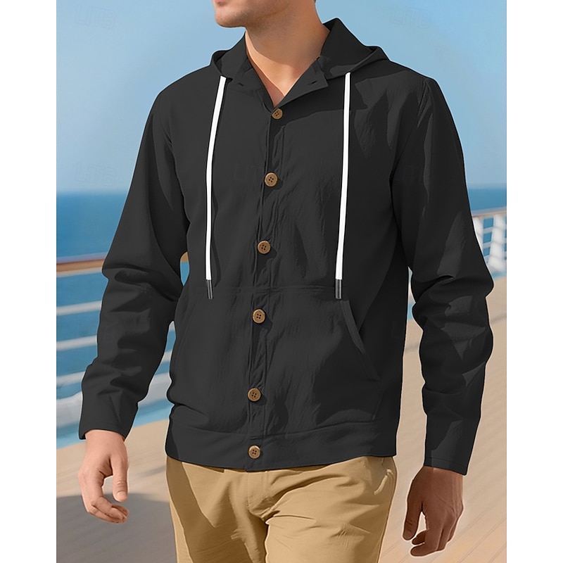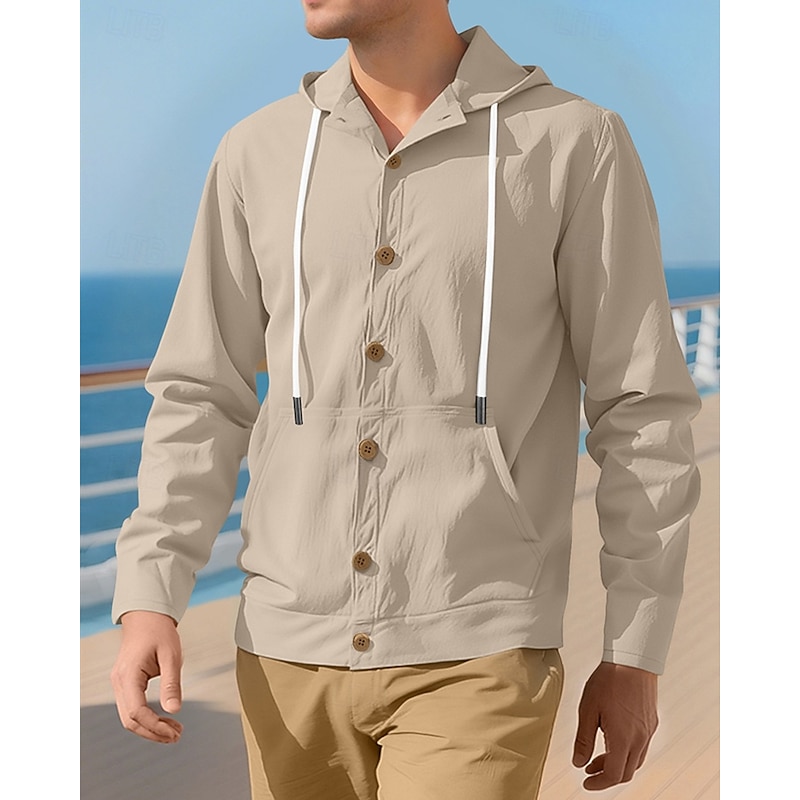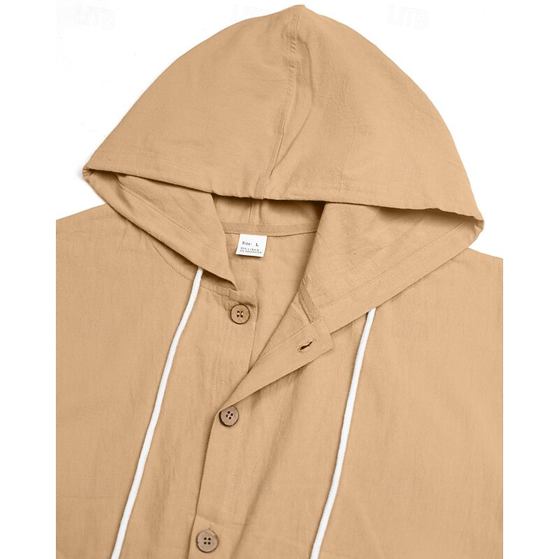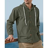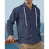 More information about Men's Shirt Summer Shirt Casual Shirt Beach Shirt Button Up Shirt Black White Yellow Navy Blue khaki Long Sleeve Plain Hooded Vacation Hawaiian Drawstring Clothing Apparel Fashion Casual Comfortable