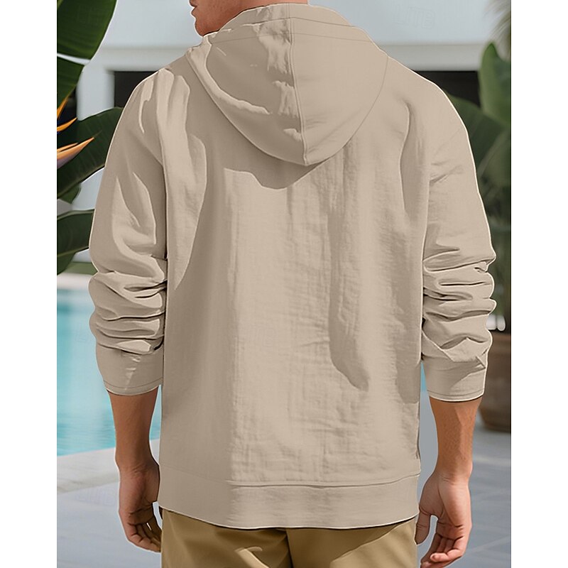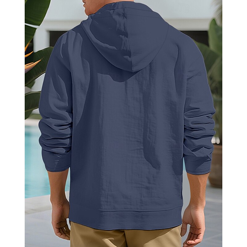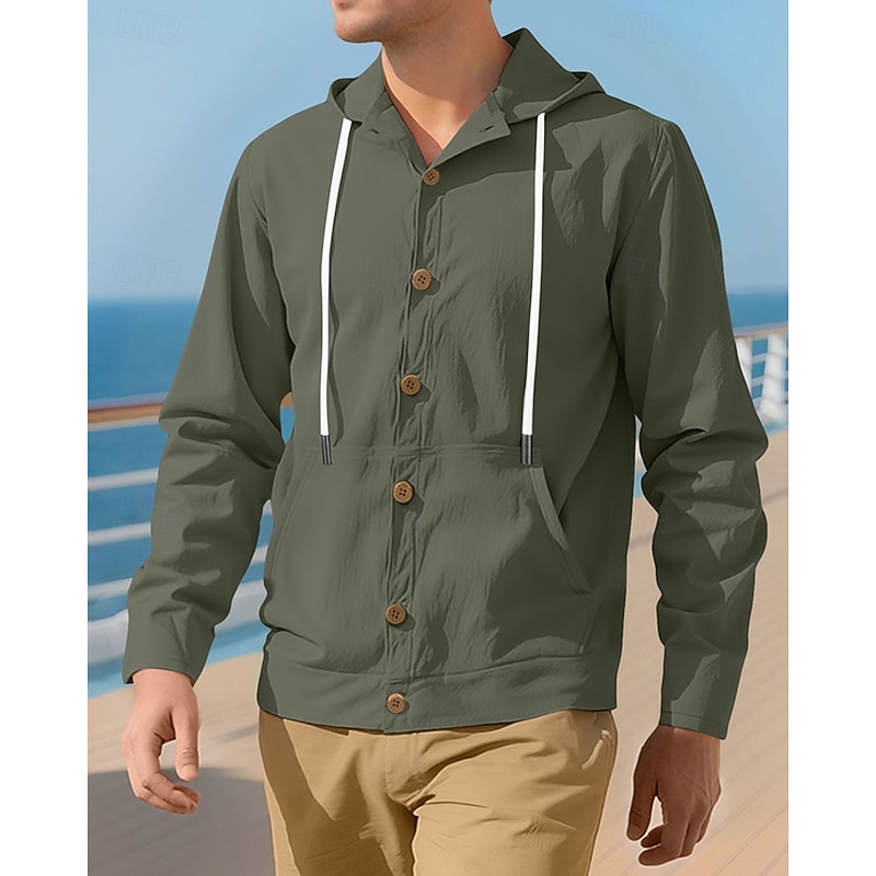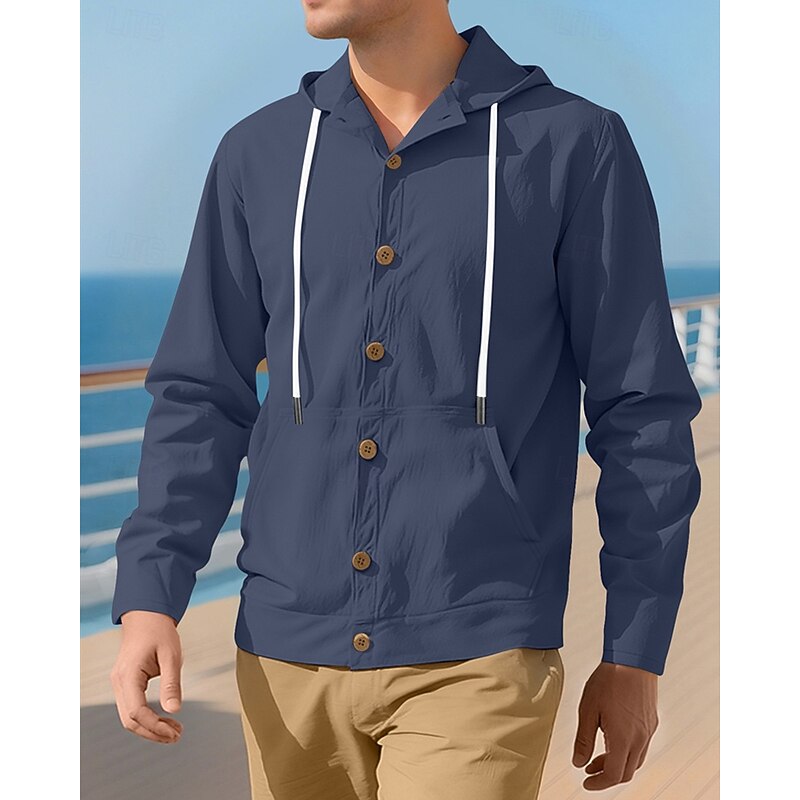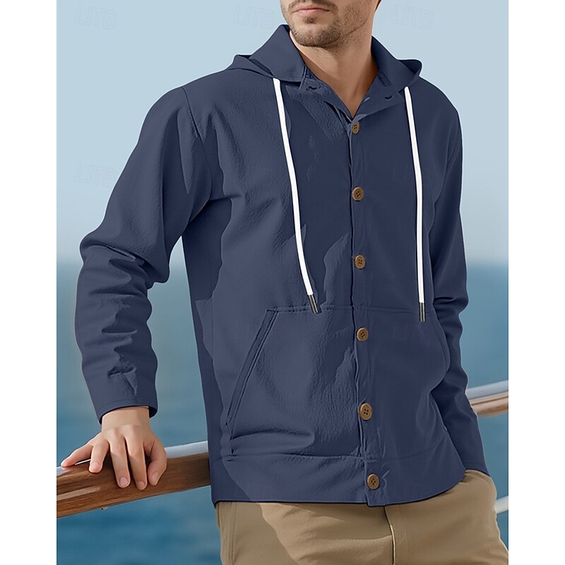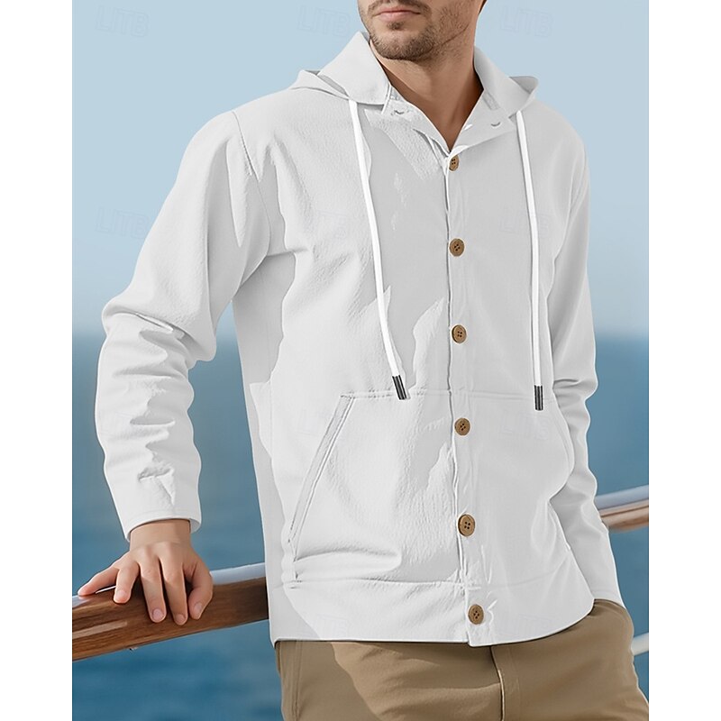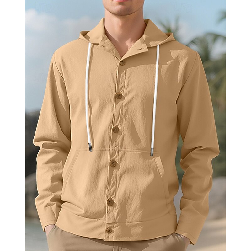 HOT ! Men's Shirt Summer Shirt Casual Shirt Beach Shirt Button Up Shirt Black White Yellow Navy Blue khaki Long Sleeve Plain Hooded Vacation Hawaiian Drawstring Clothing Apparel Fashion Casual Comfortable