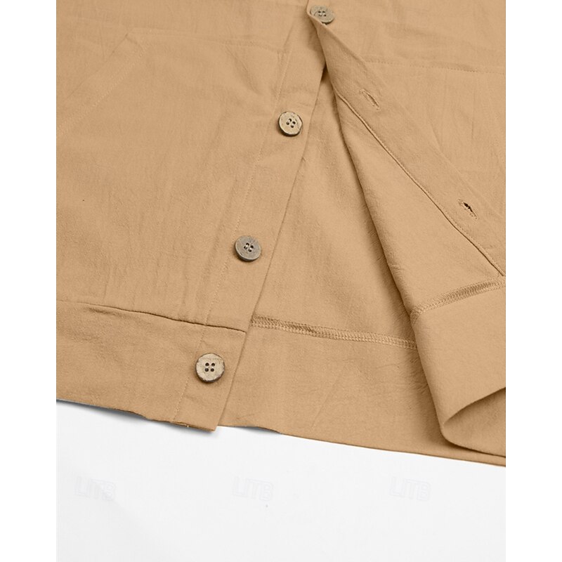 Men's Shirt Summer Shirt Casual Shirt Beach Shirt Button Up Shirt Black White Yellow Navy Blue khaki Long Sleeve Plain Hooded Vacation Hawaiian Drawstring Clothing Apparel Fashion Casual Comfortable 6