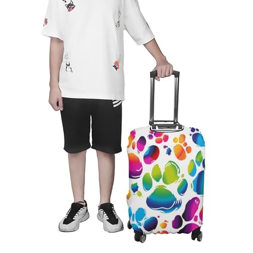 Colorful Dog Paw Print Luggage Cover, Washable Elastic Suitcase Cover Protector Fit 18-32 Inch Luggage 7