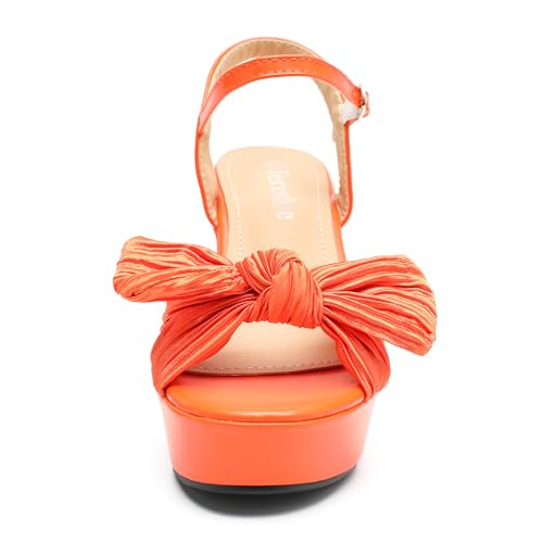 • Open round toe Bow heeled sandals features a comfortable Chunky Heels, platform, Pleated Bow Knot, ankle strap, sexy strappy slingback style.