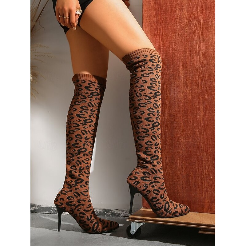 Women's Boots Sock Boots Daily Embroidered Stiletto Pointed Toe Casual Tissage Volant Loafer Dark Brown Black 6