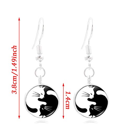 Black White Animal Necklace Bracelet Set Yin Yang Matching Cat Drop Earrings Couple Pet Jewelry Set Gift for Cat Lovers 6