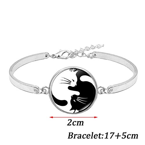 More information about Black White Animal Necklace Bracelet Set Yin Yang Matching Cat Drop Earrings Couple Pet Jewelry Set Gift for Cat Lovers