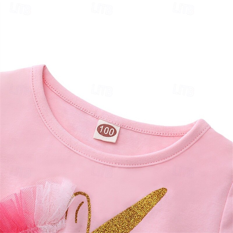 More information about Kids Girls' Dress Unicorn Long Sleeve Outdoor Casual Patchwork Fashion Adorable Polyester Above Knee Casual Dress A Line Dress Tulle Dress Summer Spring 4 years+ Pink Purple Rose Red
