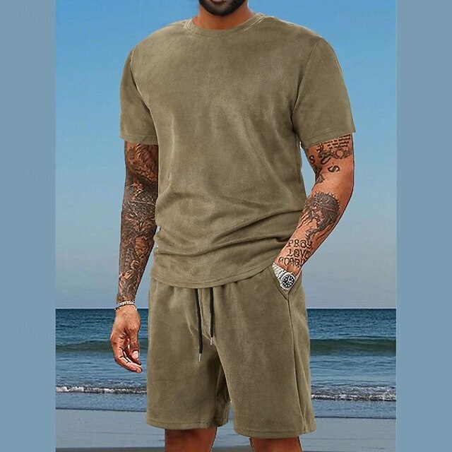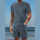 More information about Men's T-shirt Suits 2 Pieces Outfits Tee & Shorts Short Sleeve Crewneck Summer Solid / Plain Color Fashion Casual 2 Piece Vacation Daily Wear Going out Dark Blue Wine Royal Blue Top Tee for Men