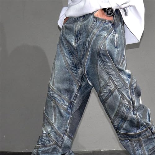 HOT ! Men’S High Street Baggy Distressed Cargo Pants Button Fly Midweight Hip Hop Trendy Streetwear Full Length Jeans