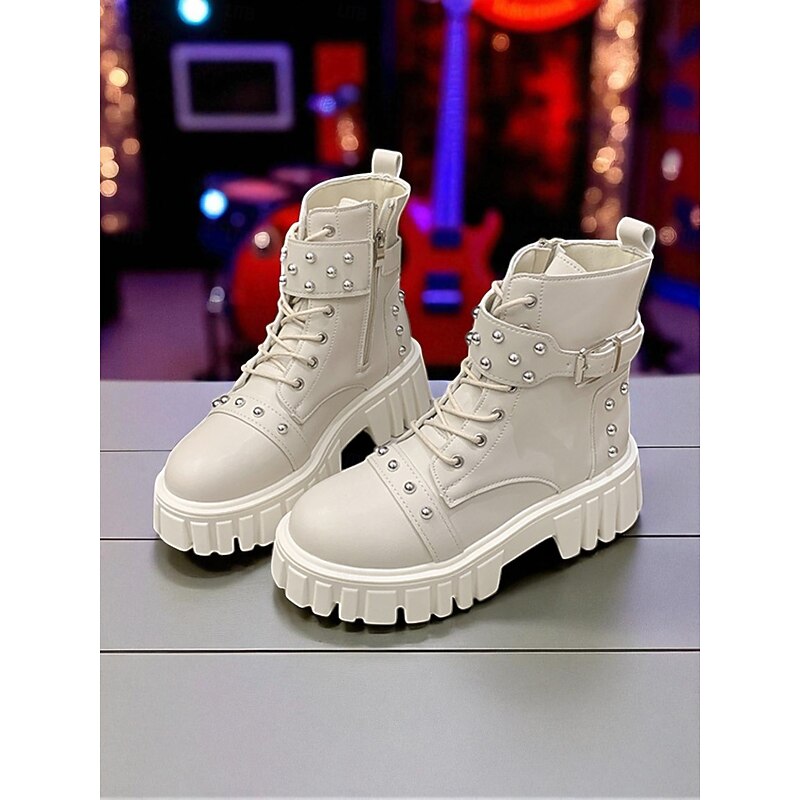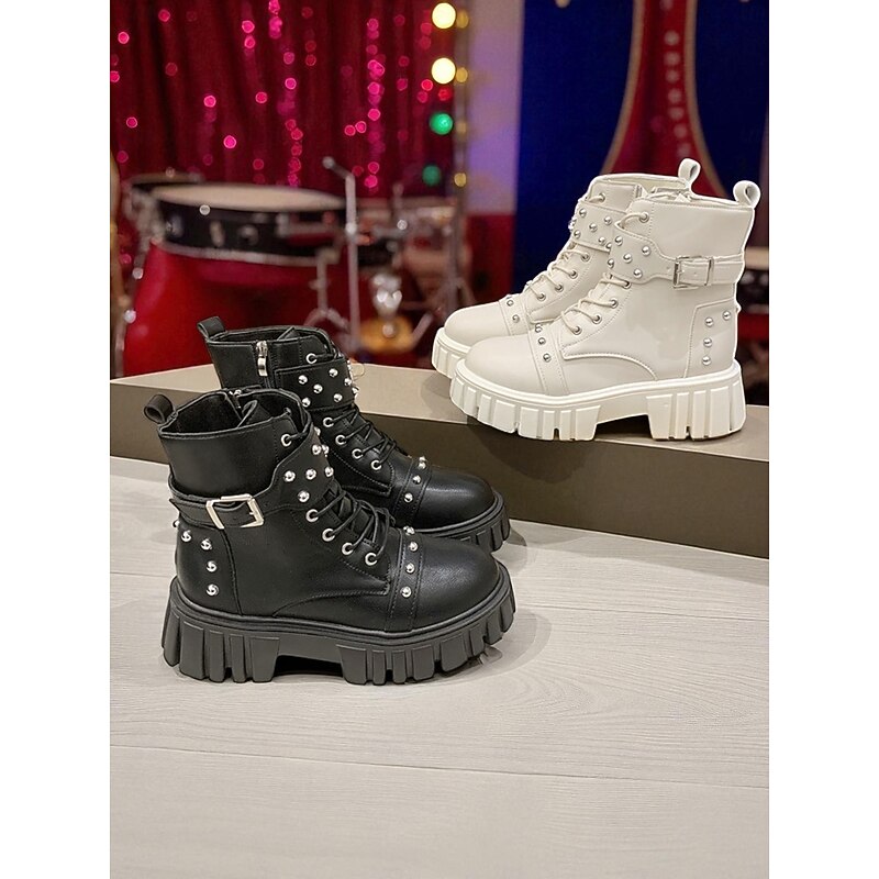 HOT ! Women's Black Faux Leather Studded Biker Boots with Chunky Platform Sole, Side Zipper & Buckle Strap - Punk Style Ankle Boots for Teens and Women, Ideal for Concerts, Streetwear & Nightlife Outfits