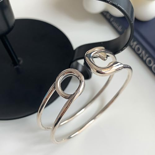 HOT ! Safety Pin Cuff Bracelet for Women Sterling Silver Plated Paperclip Double Layered Open Bangle Bracelets Adjustable Vintage Jewelry Gifts Birthday