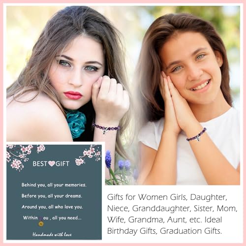 More information about Ohana Means Family Bracelet Natural Stone Beaded Amethyst Bracelets for Womens Inspirational Jewelry Stitch Stuff Gifts for Lover Daughter Mom Niece