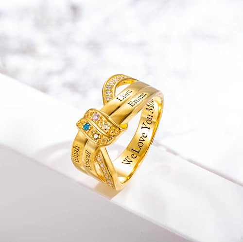 • PERSONALIZED TOUCH: Customized it with 1 to 8 birthstones and engraved names. Each birthstone represents a family member, allowing you to customize the ring to include the birthstones of your mom, grandmother, or even grandchildren