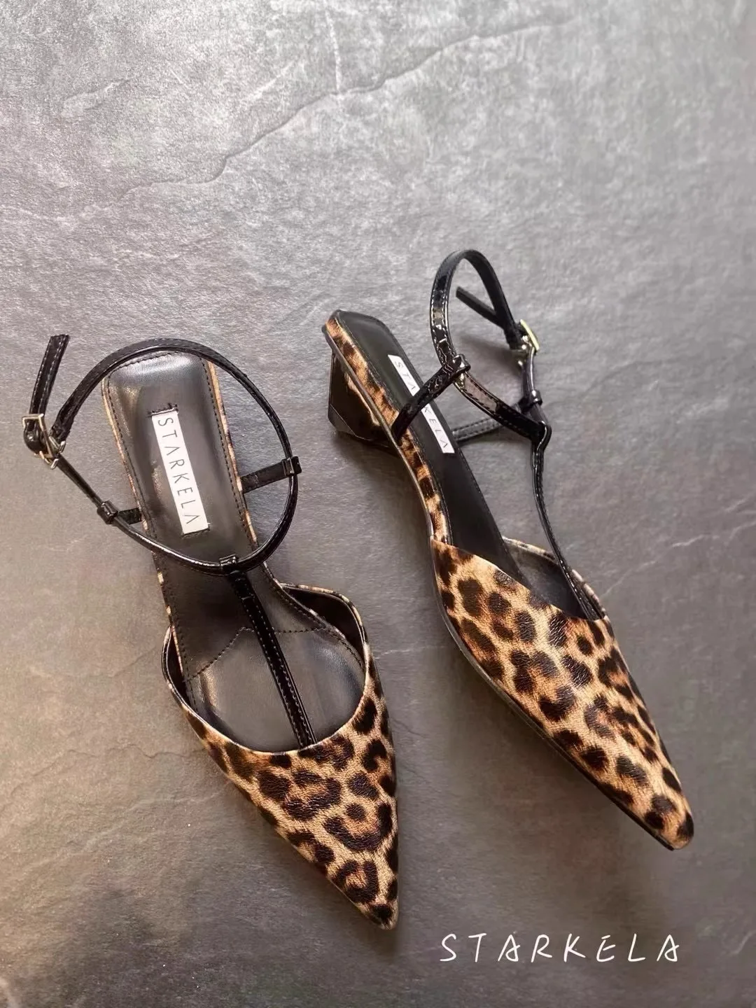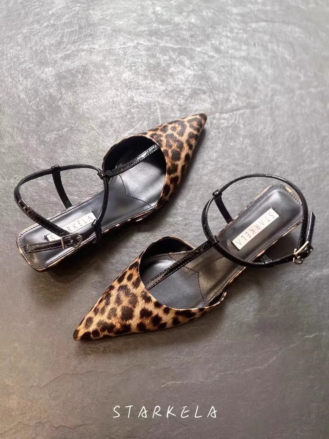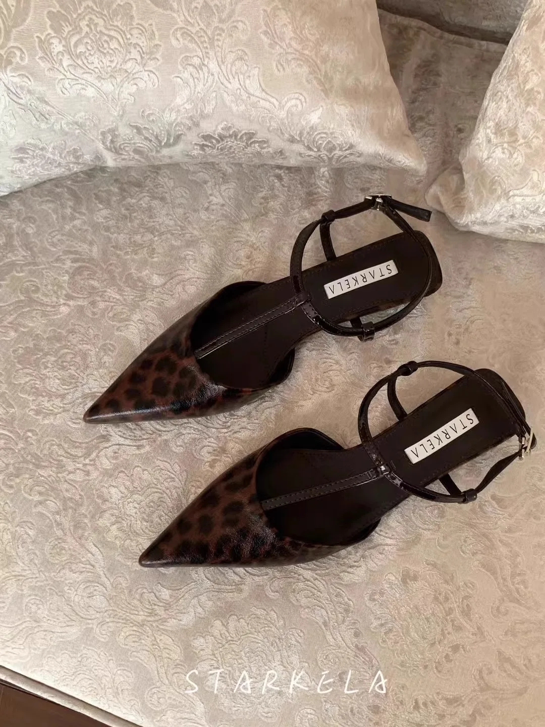 Pointed Toe Leopard Women Sandals Sexy Slingback 2025 Summer Luxury Party Sandal