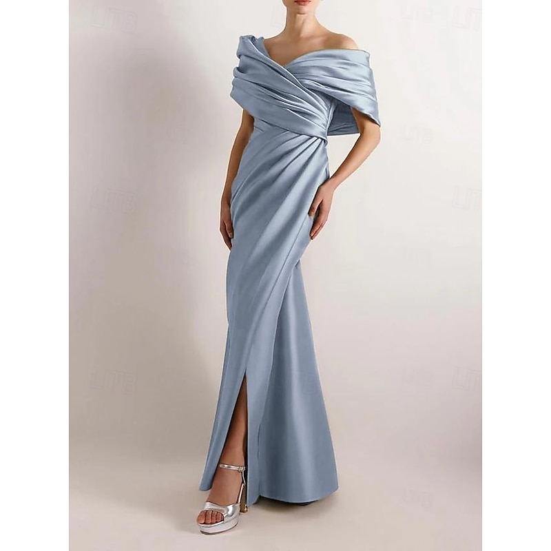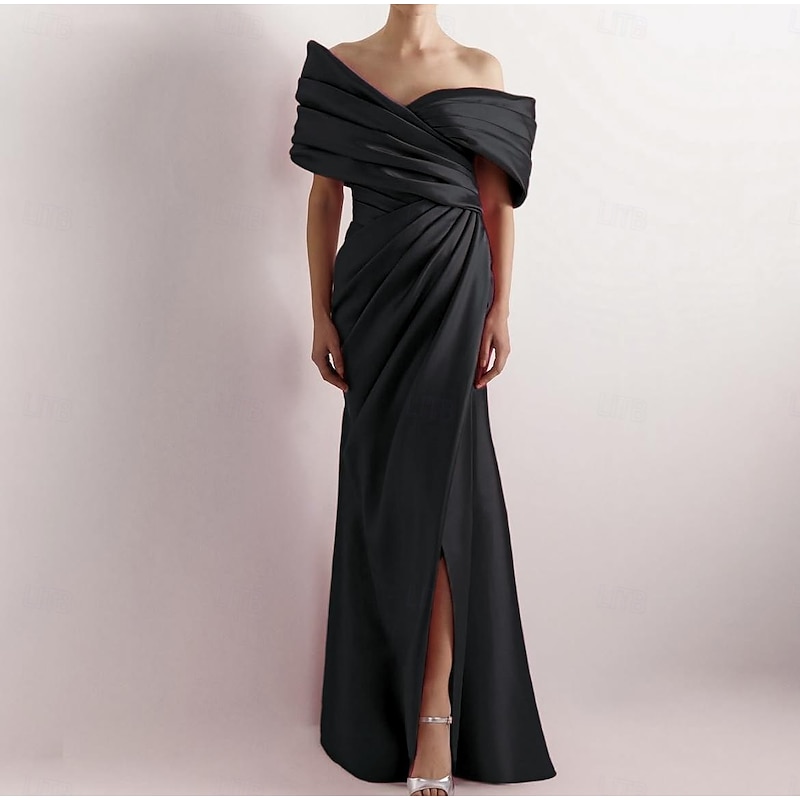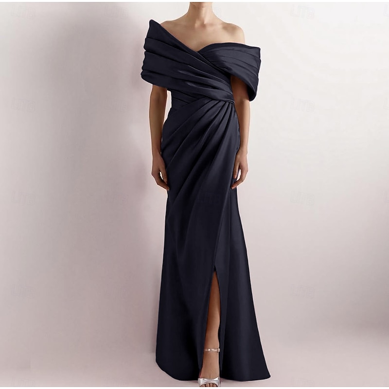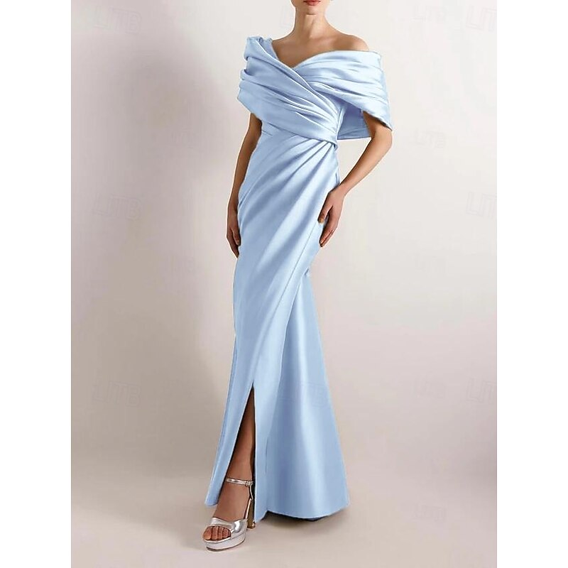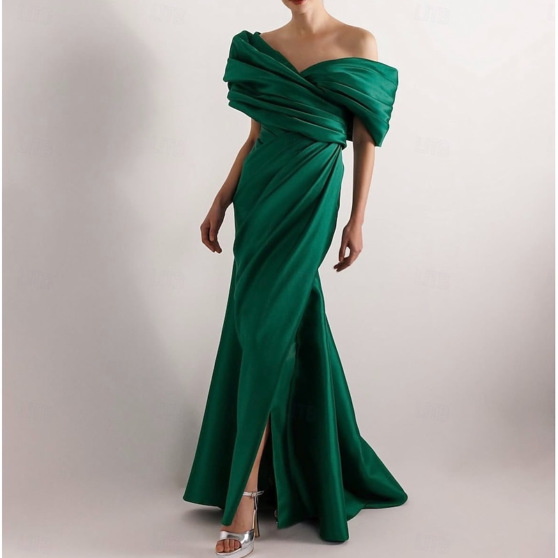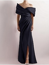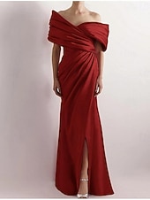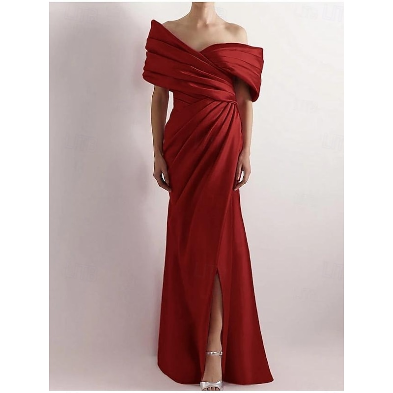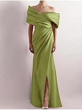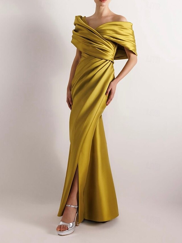More information about Dress High Fashion Mustard Dress Mermaid / Trumpet Portrait Collar Evening Gown Cocktail Dress Formal Wedding Floor Length Sleeveless Off Shoulder Satin with Ruched Details Slit