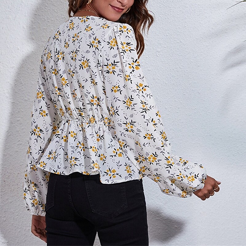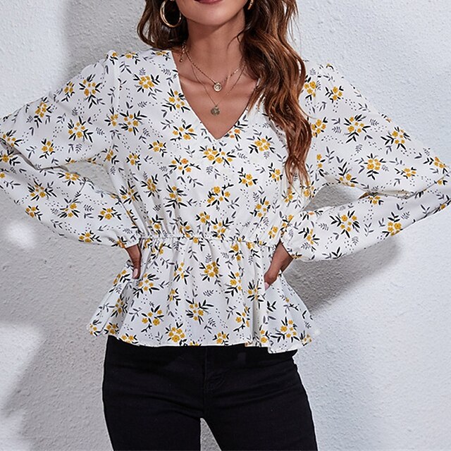 More information about Women's Summer Tops Floral Daily Stylish Basic Long Sleeve Lantern Sleeve V Neck Regular Tops Work Daily Holiday Print White Summer Spring