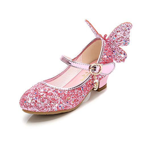 Girls Dress Shoes Wedding Party High Heel Mary Jane Sequined Heel Bow Princess Shoes 6