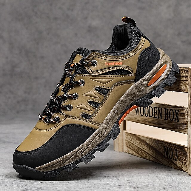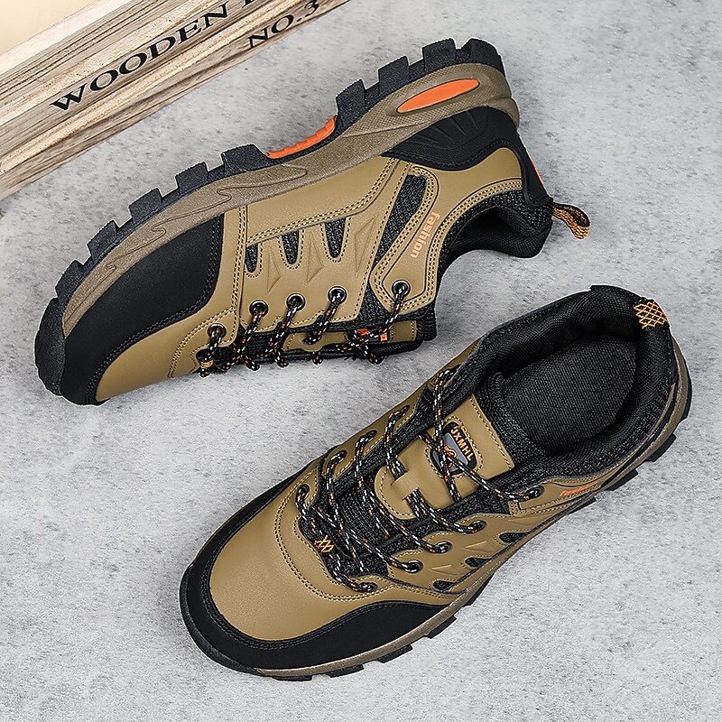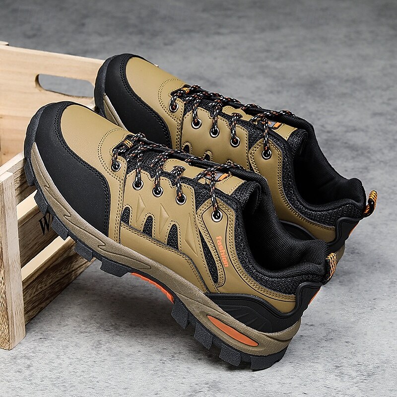 Men's Khaki and Black Outdoor Hiking Sneakers – Waterproof Trail Running Shoes with Cushioned Sole for Climbing, Camping and Daily Outdoor Wear 36