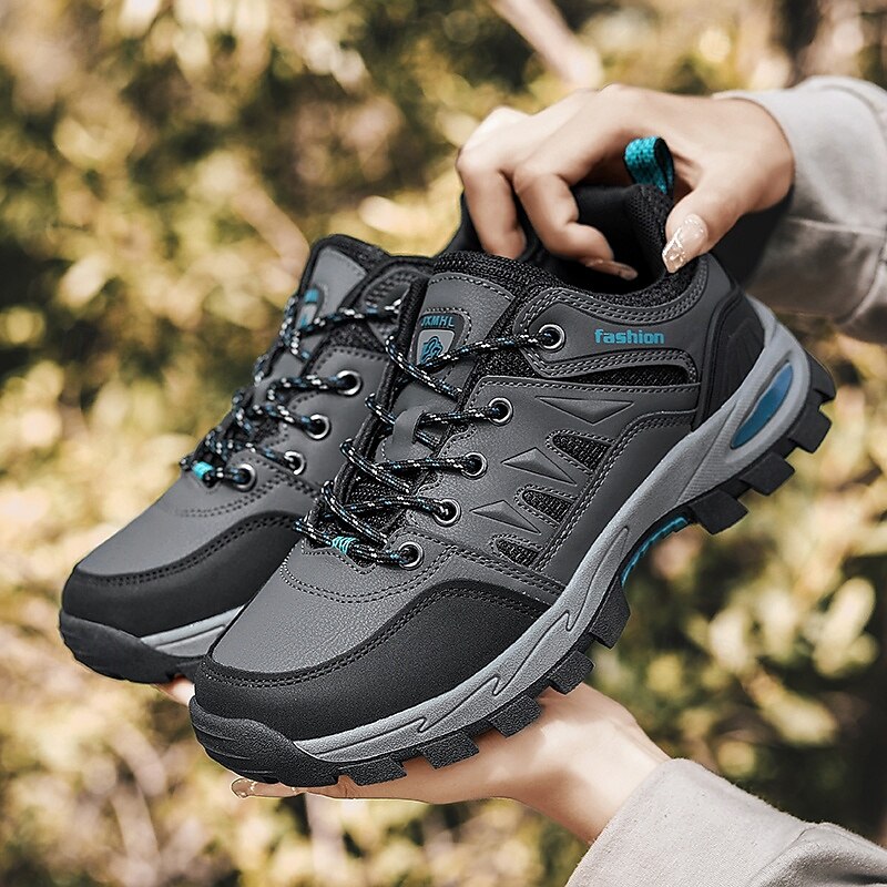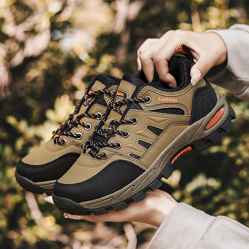 HOT ! Men's Khaki and Black Outdoor Hiking Sneakers – Waterproof Trail Running Shoes with Cushioned Sole for Climbing, Camping and Daily Outdoor Wear