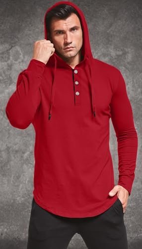 • Features: Pullover hooded, solid color, adjustable drawstrings, hoodie sports sweatshirt with three-button placket. The men’s long sleeve hooded sweatshirt comes in classic and casual sports styles, suitable for fall, spring, and winter. Perfect for daily and sportswear.