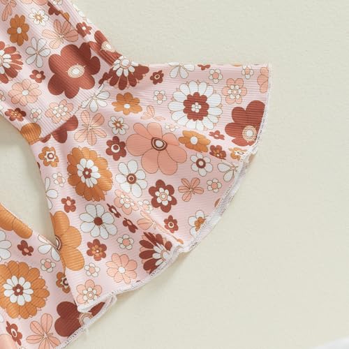 Lamuusaa Newborn Baby Girl Clothes Long Sleeve Aunties Bestie Romper Floral Flared Pants Headband Fall Winter Outfit 6