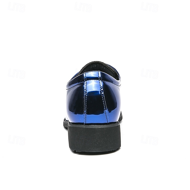 Green Patent Leather Lace-Up Shoes for Men – Glossy Formal Shoes with a Polished Finish, Ideal for Weddings and Evening Celebrations 36